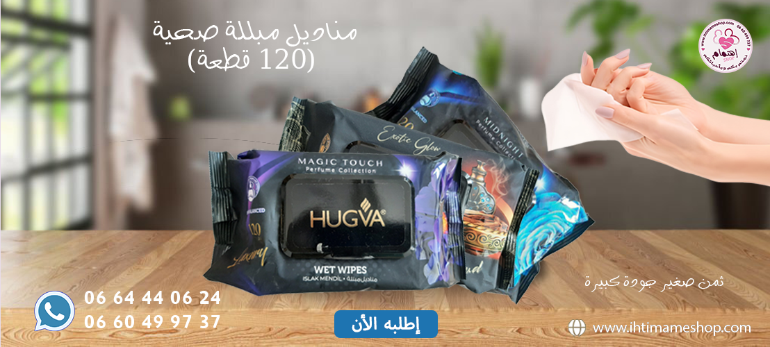 مناديل مبللة صحية (120 قطعة) / LINGETTE DE LUXE HUGVA 120 PCS OUD NOIR